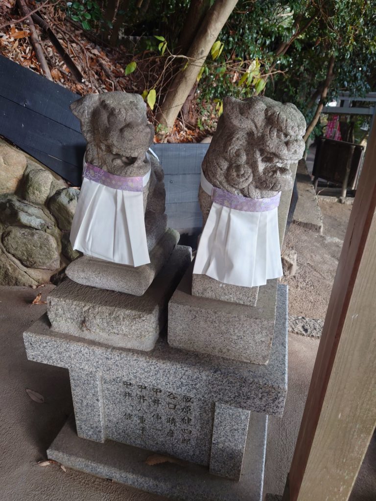 氏子の方が狛犬さんの前掛けをご奉納くださいました。