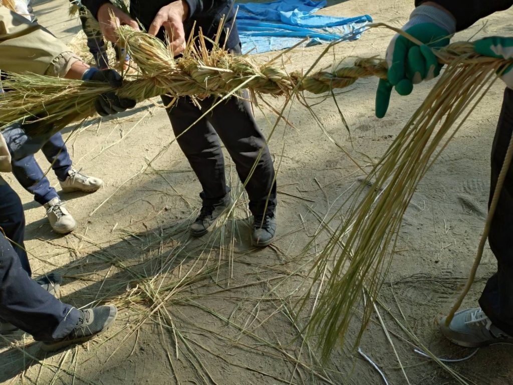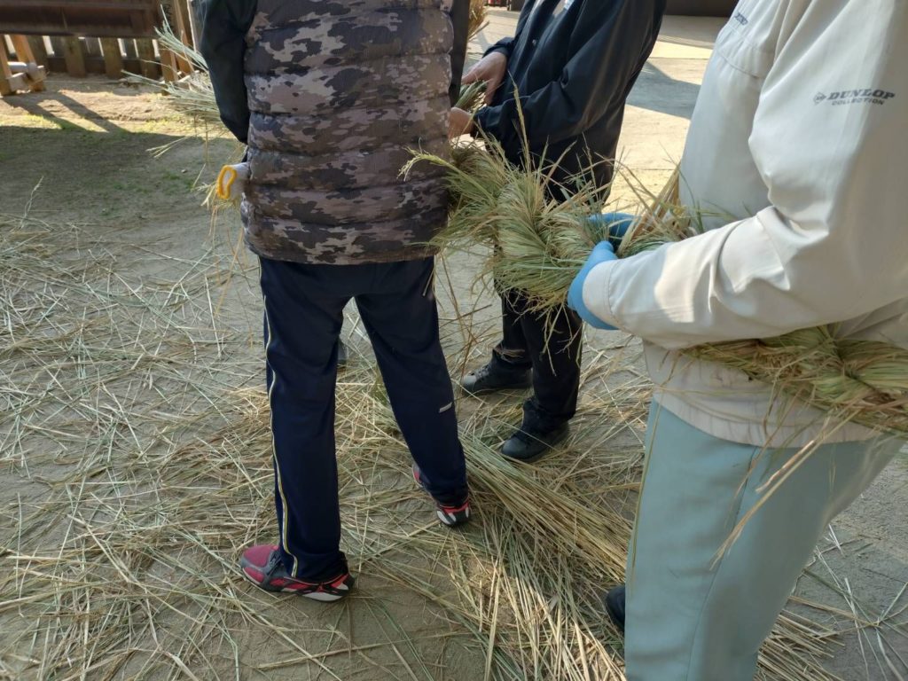 宮司はずっとご祈祷が続いており、なかなか作業を見ることもすることも叶いませんでしたが、皆さまの多大なご尽力でしめ縄奉製ができましたことを心より感謝申し上げます。