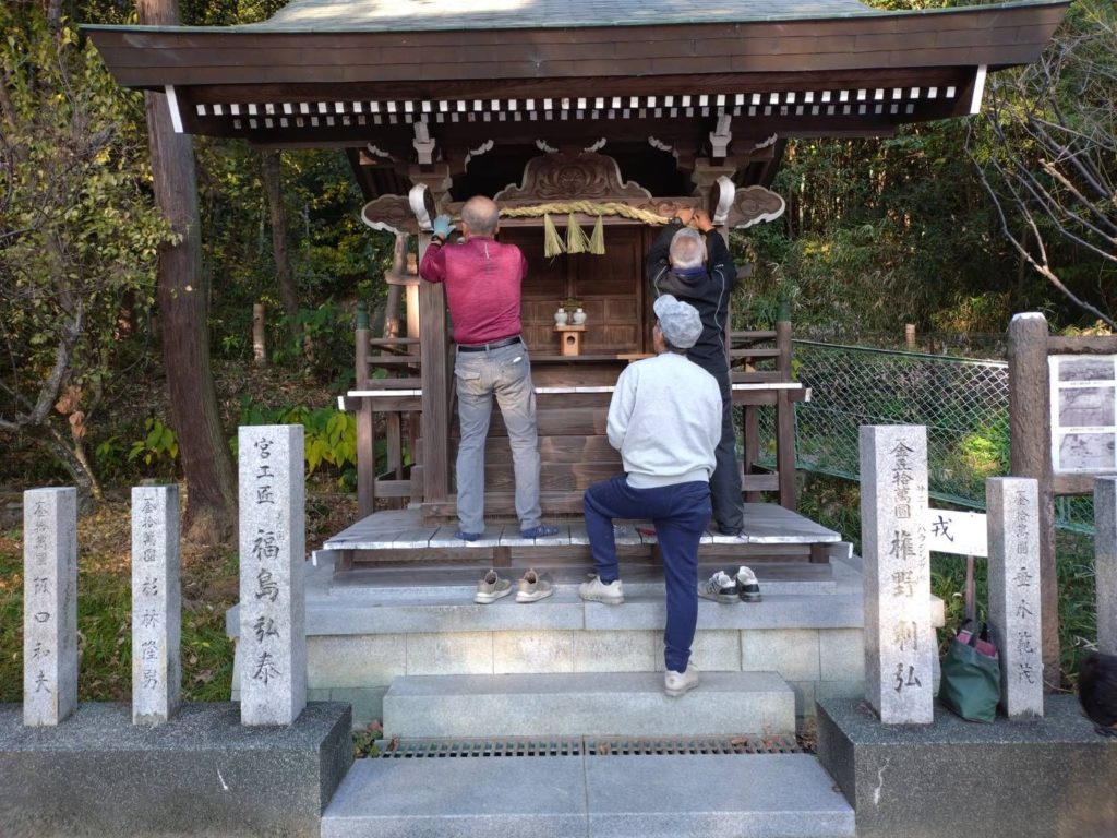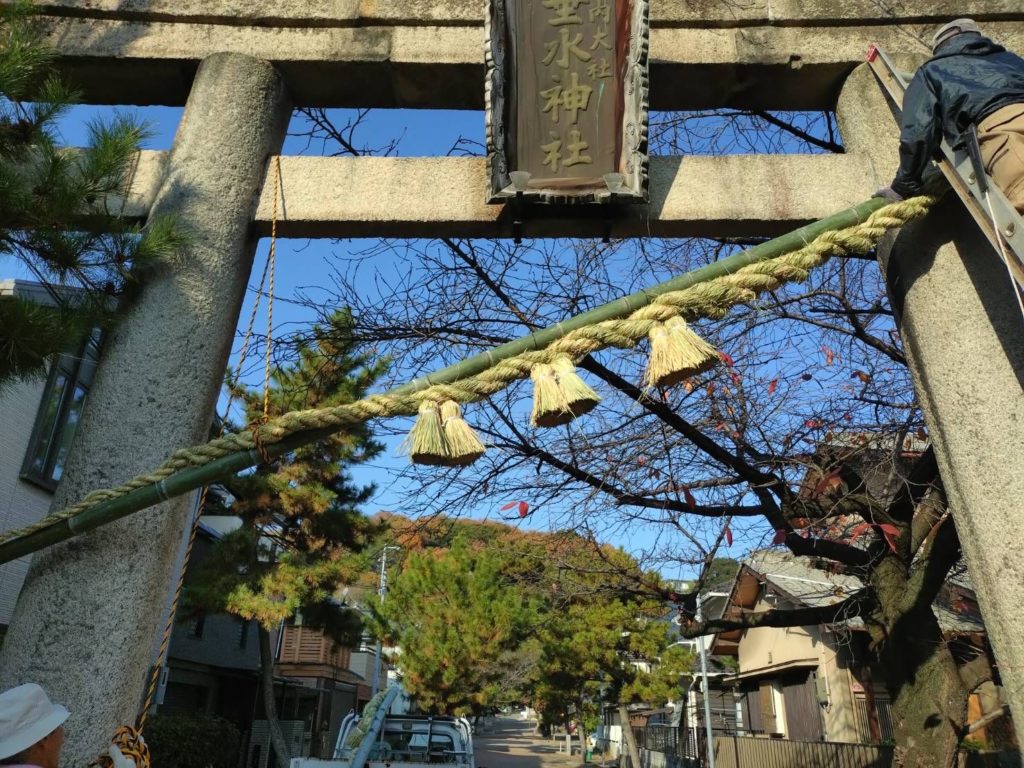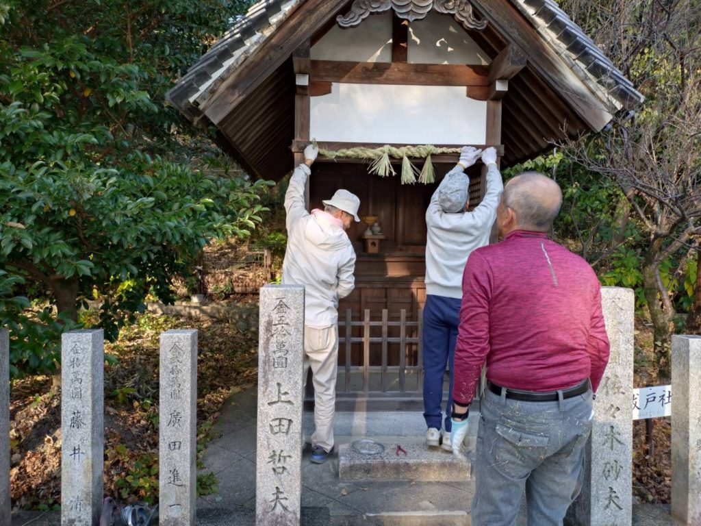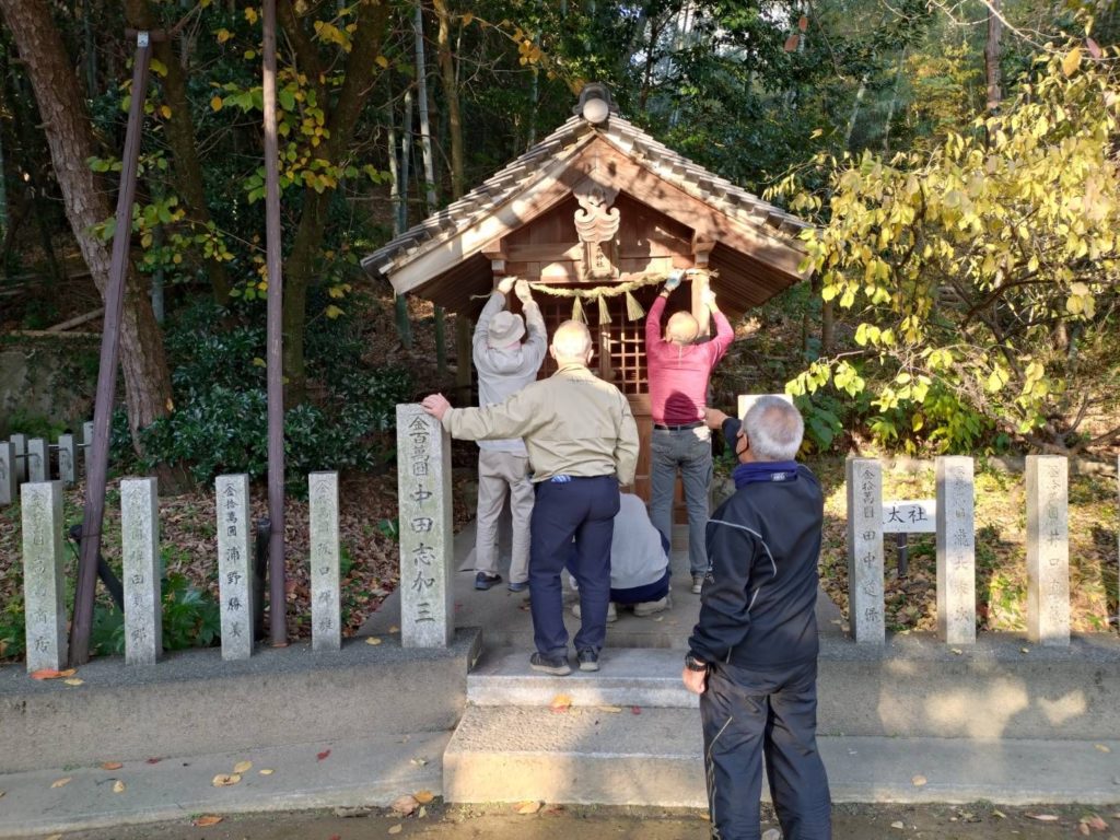 お昼をまたいでの長時間作業で、みなさまのご負担も相当なものとなりますが、おかげさまで古いしめ縄をすべて新しいものに変えていくことができました。