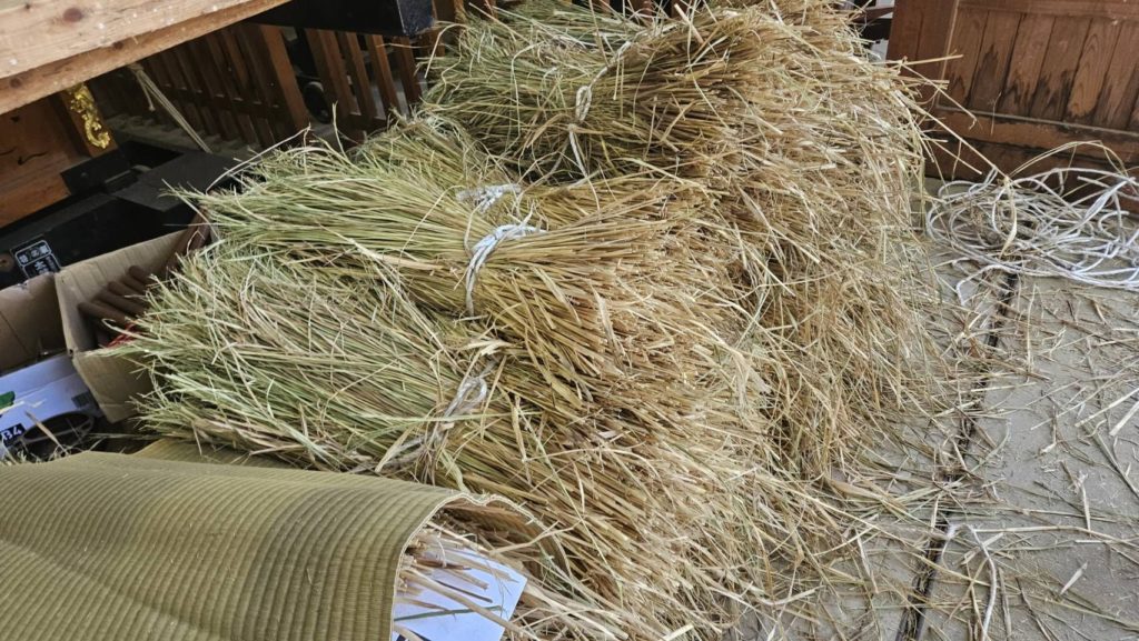 春の田植えから始まり、稲刈、天日干し、脱穀と進んできて、あとはしめ縄として奉製される日を待つばかりです。