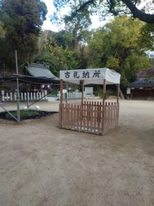 午後5時までは境内テント、その後は社務所にて午後7時まで授与しています。