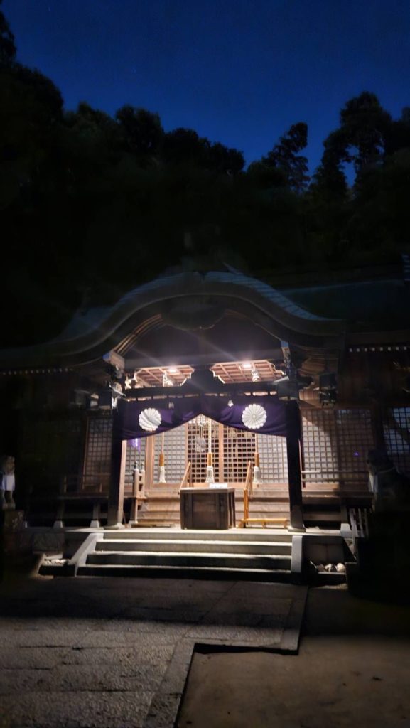 日が落ちて、宵闇が境内を覆います。 拝殿が灯りに照らされて静かに鎮座しています。 夜の森と拝殿は、とても厳かです。 共有: Facebook で共有するにはクリックしてください (新しいウィンドウで開きます) Facebook いいね:いいね 読み込み中…