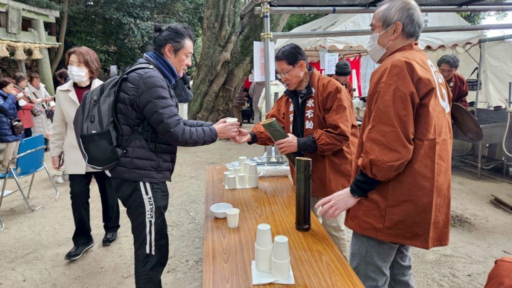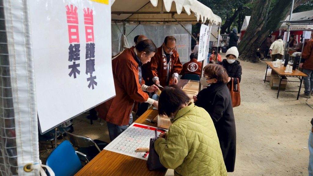 早朝から節分講の皆さまが、分担して、護摩木と経木の授与所、ぜんざいとお神酒の授与所を設置して下さり、護摩堂でもお焚き上げの用意がなされました。
